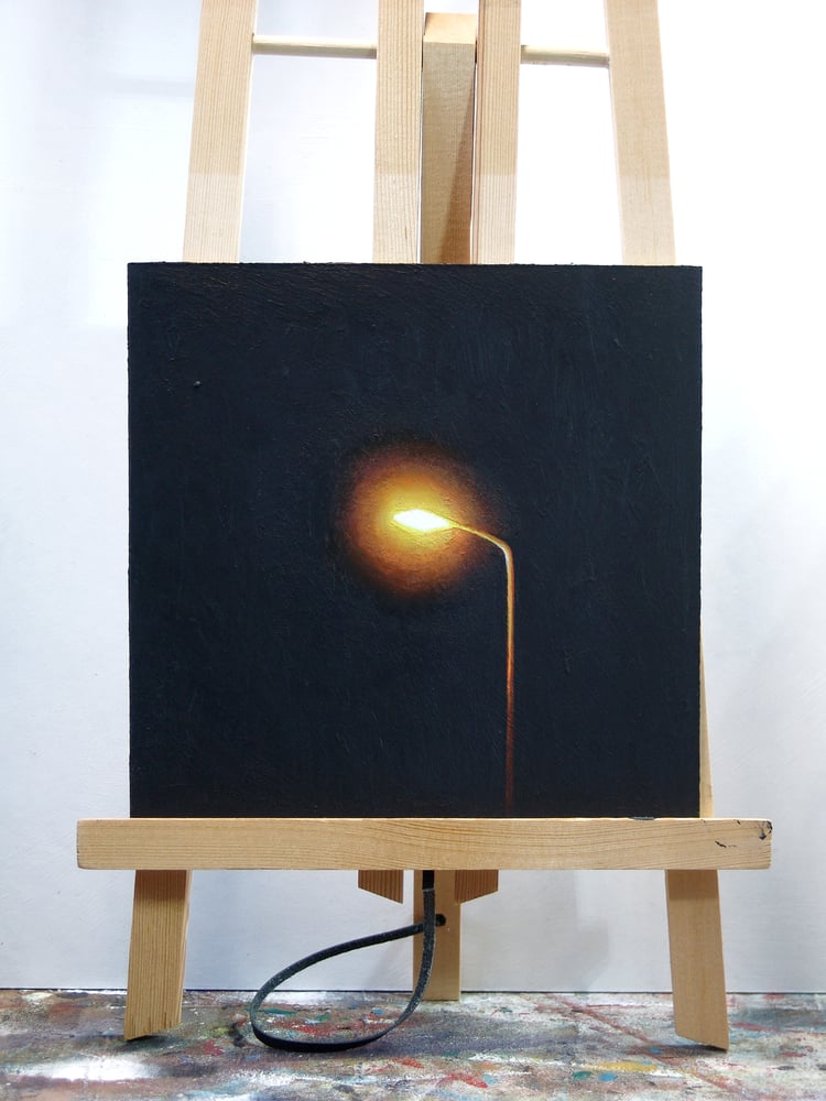 Lantaarnpaal Bij Nacht is an original, 100% handmade painting and comes with a hand signed Certificate of Authenticity. The painting is signed on the back.