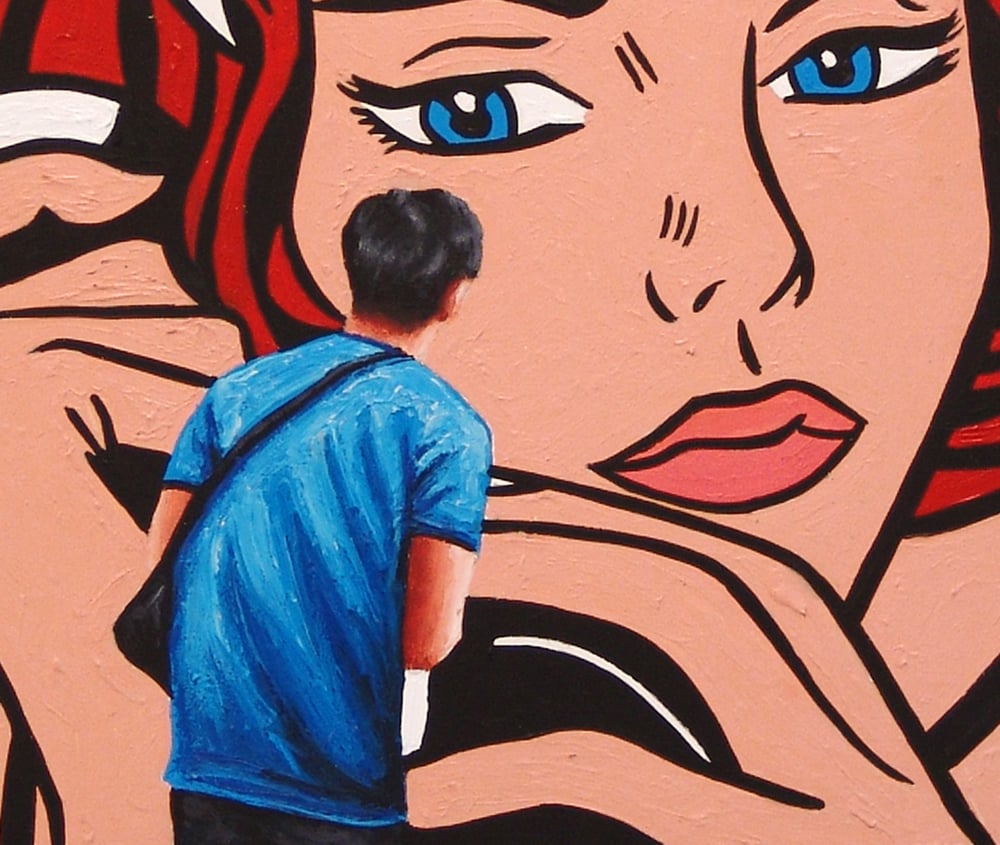 Roy Lichtenstein's paintings use imagery and styles from popular culture, like comic strips, to elevate everyday objects and advertising into high art, questioning the distinctions between fine art and mass culture. Lichtenstein explores themes of artistic originality, consumerism, and the superficiality of modern society.