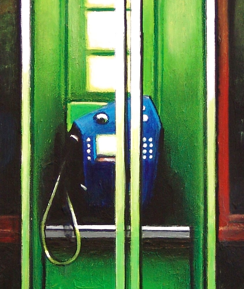 Telefooncel Bij Nacht is an original, 100% handmade painting and comes with a hand signed Certificate of Authenticity. The painting is signed on the back.